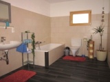 * Badezimmer mit Dusche, Badewanne und WC, Fön